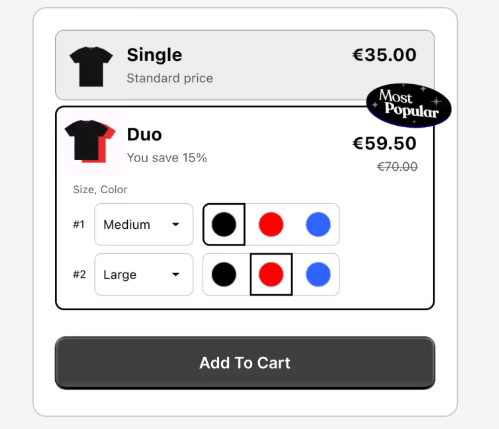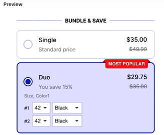 - Customize each bundle variant by modifying their discounts, titles, layouts, deal types, colors, images, etc.