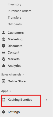 - Click on “Kaching Bundle” under the Apps label of your Shopify store.