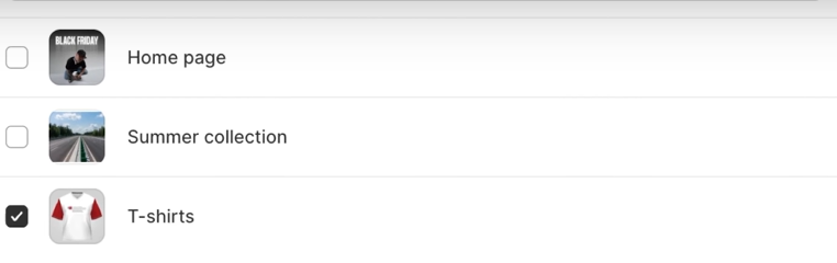 A dynamic button will appear after you make your choice. Click it to see all existing options. Select as many products, collections, or exceptions as you want. I chose to bundle items in my existing T-shirt collections.