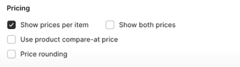 In the Pricing section, select how you want the discount prices to appear. I’ll set mine to “show prices per item” because it emphasizes how much customers save on each T-shirt.