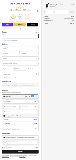 Hemlock & Oak boosted conversion rate by 7% after enabling Shopify’s one-page checkout.