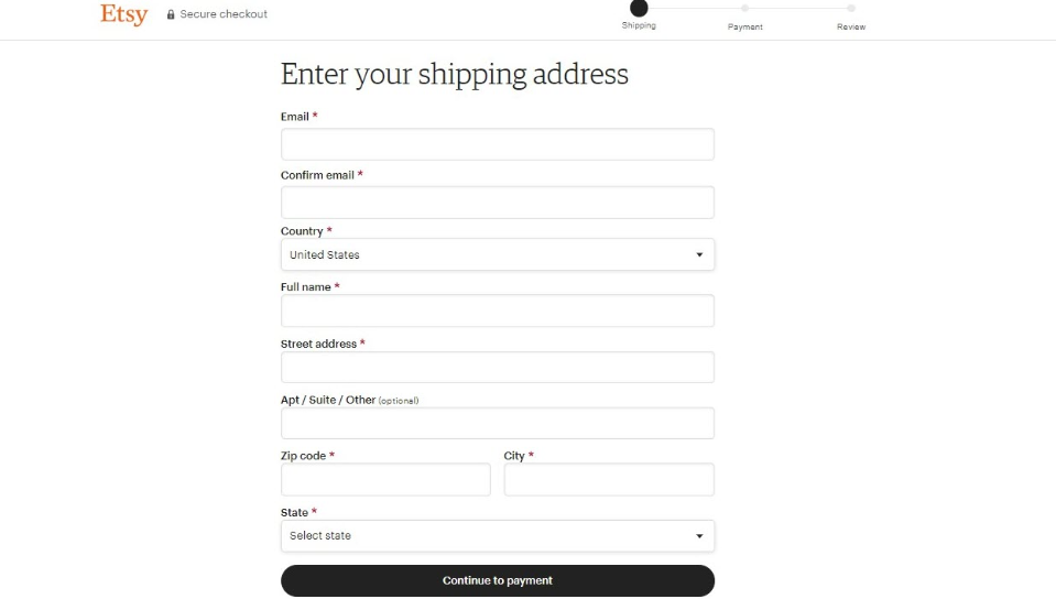 Break your process into clear steps and show progress with a visual indicator. Here’s a look at how Etsy used a progress indicator in their checkout designs: